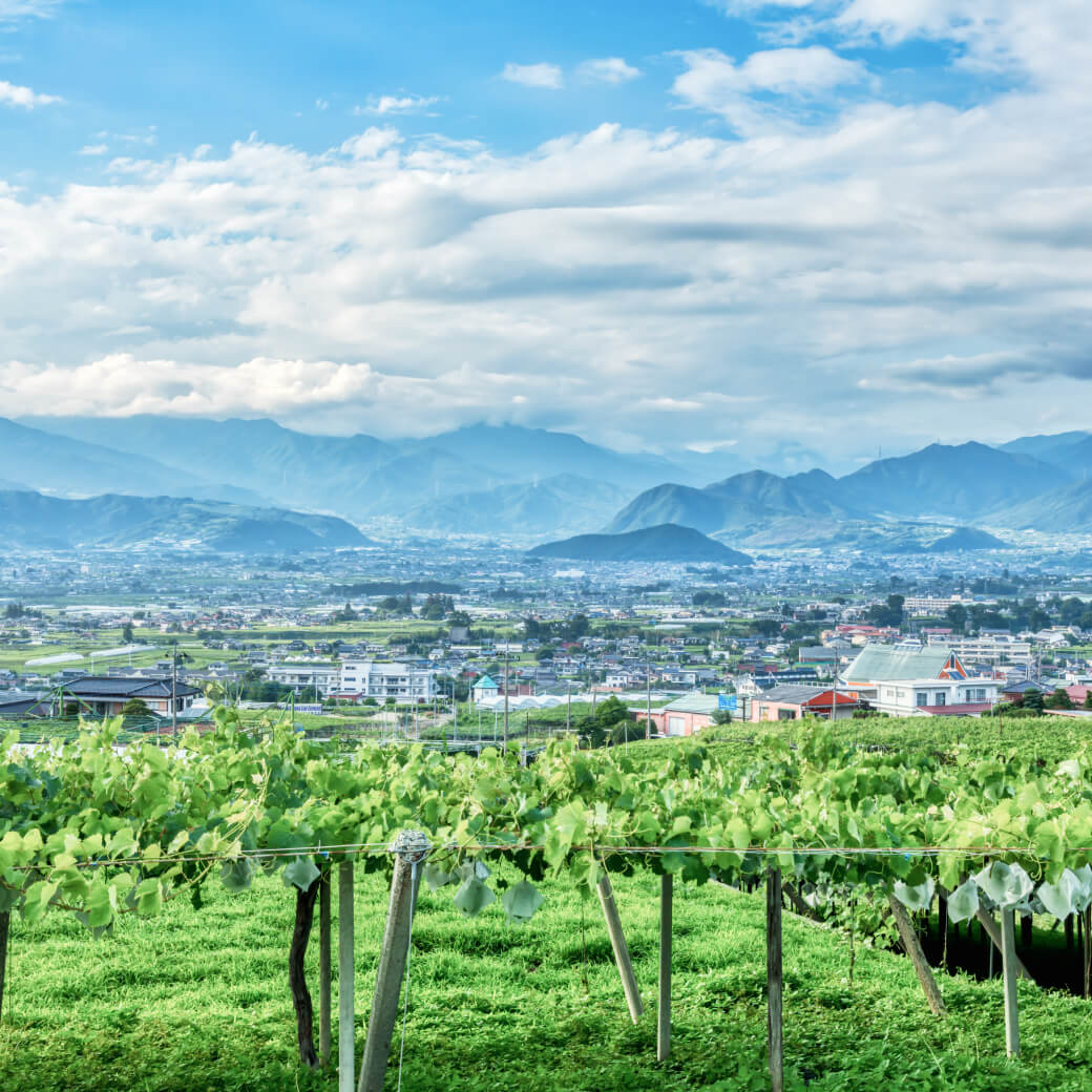 山梨県は日本一の日照時間を誇り、その恵まれた気候が美味しい果実の宝庫を育んでいます。特に甲府盆地は寒暖差が激しく、果実が栄養を蓄えることで、甘みの豊かな果実が実ります。また、盆地の扇状地は降水量が少なく、水はけが良いため、果実は瑞々しく育ちます。